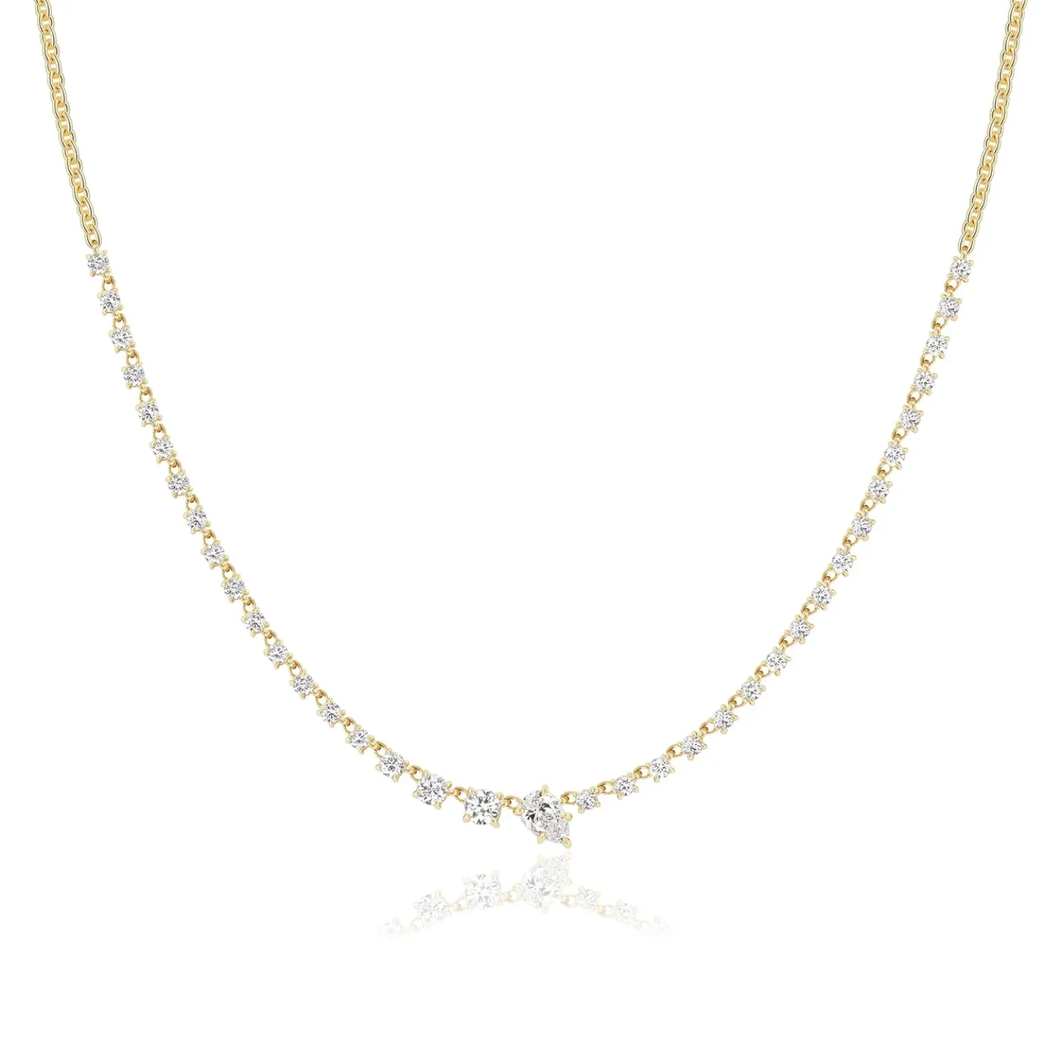VICE VERSA White Diamond Bias Necklace in Yellow Gold. A Classic Diamond Tennis Necklace, but Just a Little Bit Cooler. Easy to Wear, Seriously Timeless, and Something you Never get Tired of Wearing.