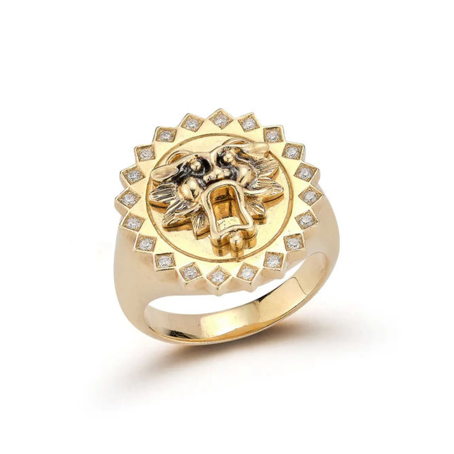 Storrow White Diamond Leo Signet Ring in Yellow Gold. Inspired by An Antique Victorian Lion, this Leo is fierce.
