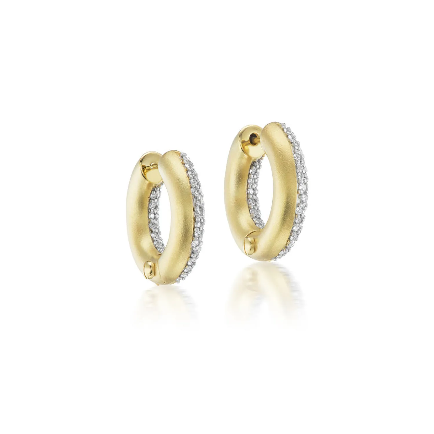 BECK Small Hinged Hoop Earrings with White Diamond pavé and Yellow Gold.