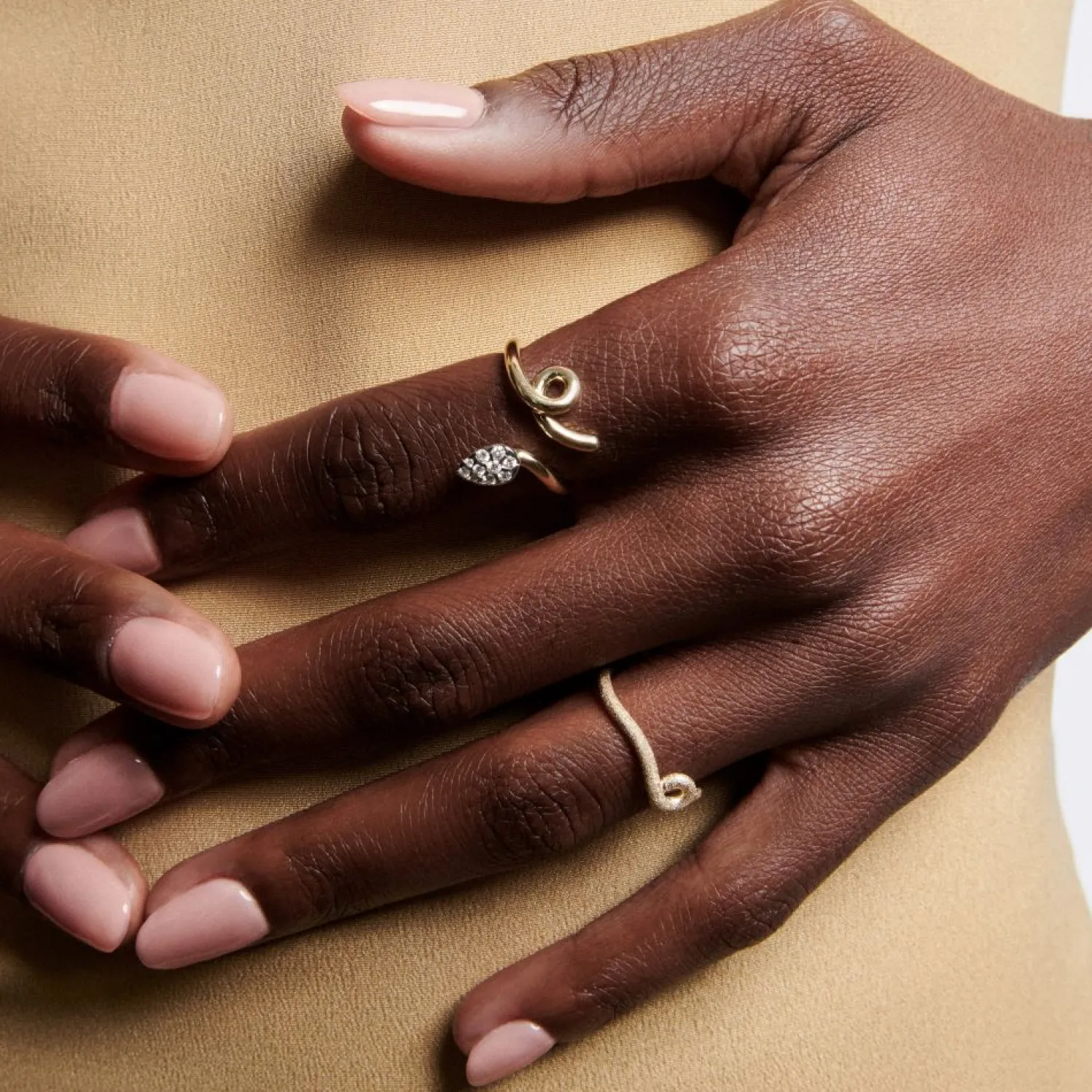 Bea Bongiasca White Diamond Pavé Baby Vine Ring in Yellow Gold.