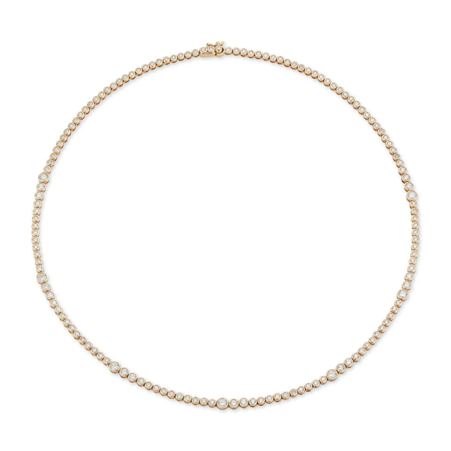 ONDYN Rainsun Necklace with Articulated, Bezel-set White Diamonds in Repeated Gradual Pattern. The Perfect Tennis Necklace with a Playful Edge.