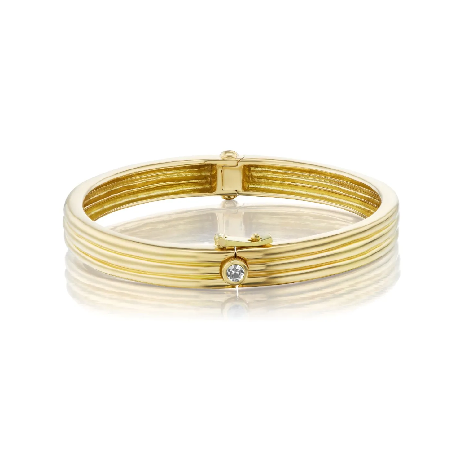 BECK Single White Diamond Scuba Trio Bangle in Yellow Gold.